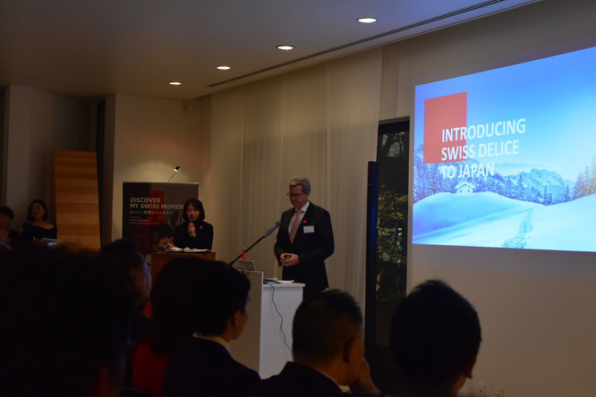 まずは記者会見から。ジャン=フランソワ・パロ駐日スイス大使からの挨拶から始まり、スイスデリスの商品紹介から。はい、本当に美味しかったです!(すでにたくさん食べた人)