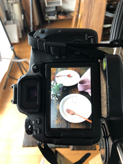 終了後は実際に撮影して色味の確認。空のお皿だけでも十分なのに、しのさんが色々とできたてのお料理まで持ってきてくださり感激・・・。