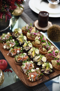 どうしても入れたかったのは北欧のオープンサンドイッチのスモーブロー!ニコライバーグマンカフェなどを始め、いまでは日本でもおなじみですし、ランチタイムにぴったり!今回はフィンガーフードサイズにして3種類ご紹介しました。